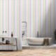 Lighten up with this fresh and breezy pastel wallpaper. Patterned with vertical stripes in ice-cream colours, the pretty paper is a breath of fresh air for any room. Bring a calming and whimsical look to the nursery or playroom; enjoy the simple charm of deck chair stripes in the summerhouse or beach hut; or create a refreshing, seaside inspired shower room.