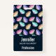 Name badge with a beautiful pattern. Watercolor butterflies, painted in pastel colours including pink, purple, blue, yellow and green. Dark blue watercolor background.