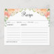Pretty Peach Floral Bridal Shower Recipe Card