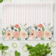 A trendy design featuring peach and terracotta flowers over a striped background.