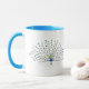 Pretty digital painting of a peacock with its feathers spread, is printed on the both sides of custom mugs.