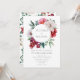 Very pretty pink, red and white peony wreath with bride and groom names inside. A pure white background sets the tone for simplicity. So sweet and delicate. A perfect invitation for your special day.
