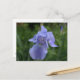 Pretty close-up of Periwinkle Iris with yellow white centre and greenery. Bud on long stem in the background. Original Photography by TamiraZDesigns.