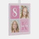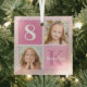 Pretty 2 photo square keepsake Christmas ornament for a little girl or toddler. Celebrate your child's birthday with cute photographs of them on this add your own photograph card with beautiful pink squares. Add their name and age.