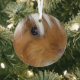 Photograph of a pretty, Peruvian, buff and white guinea pig face closeup. Customisable text and background colour on back of ornament.