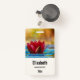 Personalised name badge with a photograph of a pond with a lovely red lotus flower poking out on top.