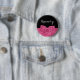 A chic pink and black button with a feminine and stylish rose floral pattern and a girly pink hot pink ribbon tied into a cute bow. Personalise this pretty romantic pink flower design by adding your name. Flat printed image, not actual ribbon. Original Art copyright of ©OhSoGirly