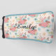 Pretty lady's golf club cover done in ivory, with a robin's egg blue, coral, green, brown, and yellow floral pattern. Personalise the black text to suit your needs. Great gift idea. Chose either driver cover or putter cover.