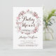 Beautiful pink floral wreath baby shower invitation. It features a floral wreath of pink and grey spring flowers with whimsical modern calligraphy. This floral wreath baby shower invitation will be perfect for It's a Girl baby showers and garden baby showers. Personalise by adding your event details.