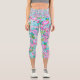 Pretty Pink Aqua Blue Chic Trendy Pastel Floral Capri Leggings