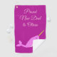 This awesome golf towel features a digital art image of a pretty and magical pink baby girl Narwhal. The main body of the Narwhal has a rough texture and is bright pink while the belly is a paler shade of pink. The Narwhal has a black eye with a pale pink pupil and a shiny gold horn on its face. It also has a delicate tail and flippers. There is custom text so you can include a message.