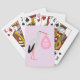 This awesome deck of playing cards features a graphic image of a cute white Stork with black tail feathers holding onto a pale pink bundle of blankets. There is pink text on the bundle that says "Baby Girl". This design is perfect for celebrating a baby girl.