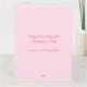 This awesome gender reveal card features a digital art image of a pretty pink Baby girl Thanksgiving Turkey. The Turkey has a bright pink body with pink tail feathers sticking up. It has pale pink legs and beak and pretty pale pink eyelids.