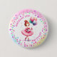 Personalised Birthday girl button. A cute little ballerina in a pink tutu holding birthday balloons and gift.