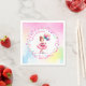 Girl's Birthday party personalised paper napkins. A cute little ballerina in a pink tutu holding birthday balloons and gift.