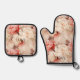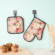 Pretty Pink Blush Cream Rose Floral Oven Mitt & Pot Holder Set