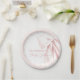 Cute and elegant paper plates featuring a soft blush scalloped shape and a pretty satin bow. Perfect to match your pink bow baby shower theme and complete your table décor in a sweet and coordinated way.