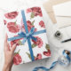 Pretty Pink Carnations Flowers on White Patterned Wrapping Paper