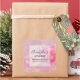 Business stickers with a photograph featuring a bouquet of pink carnations. Set on a dreamy ethereal background.