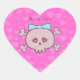 Pretty Pink Cartoon Skull & Hearts Personalised Heart Sticker