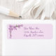 A branch of pretty pink cherry blossoms against a pink background adorns the corners of this return address label.