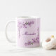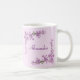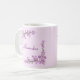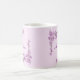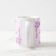 A branch of pretty pink cherry blossoms against a pink background adorns the corners of this customisable mug.