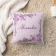 A branch of pretty pink cherry blossoms against a pink background adorns the corners of this customisable pillow.