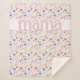 Mama blanket in soft pink with colourful wildflower pattern and bold modern lettering. The design features pretty wild flowers with "mama" lettered in ornate typography. Please browse my Mother's Day Wildflower Collection for more flowery cards and gifts.