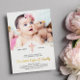 Gold foil girl baptism invitation personalised with a photo of your daughter. Pale pink and gold cross with your daughter's name in a bold gold foil script.