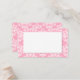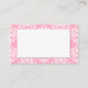 Pretty pink and white wedding escort place card ready to hand write your guests name and table numbers on. Graphics of a pretty pink and white damask pattern as a background, with a white scalloped text area. Add a hole in the top right corner and ribbon, to tie onto favour bags, for an added treat for your guests.