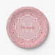 Pretty Pink Damask Pattern Monogram With Name Paper Plate
