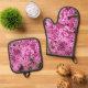 Pretty Pink Daphne Flowers Oven Mitt & Pot Holder Set
