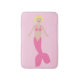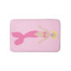 This awesome bath mat features a digital art image of a pretty pink Mermaid. She has blonde hair and blue eyes and a pink shell top. Her tail is pink and covered in pretty pink shining diamond shaped scales. She is wearing a gold heart shaped necklace and a gold ring on her fingers. Her nails are pink and she has pink lipstick on. She also wears a beautiful pink bow in her hair.