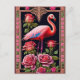 Pretty Pink Flamingo Rose Illustration Postcard