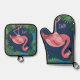 Pretty Pink Flamingo with Name Oven Mitt & Pot Holder Set