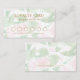 Pretty and chic pink and white watercolor floral print with leafy green foliage company loyalty card.
