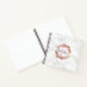 A square spiral notebook designed with a floral wreath made with pink and orange flowers and twigs, sprigs and leaves. This digital image was originally created with