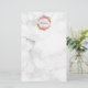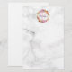 Stationery designed with a floral wreath made with pink and orange flowers and twigs, sprigs and leaves. This digital image was originally created with watercolors and is cute and trendy. The background is an image of elegant white marble. Personalise with a monogram initial and name.