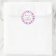 Pretty and girly pink, purple and blue floral watercolor wreath "thank you" classic round sticker for a baby shower. This whimsical sticker has a white background and elegant dark grey and hot pink text. Personalise by adding your own name and baby shower date. You can even change the text colour and font style using the customise option.