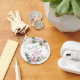 Pretty and girly pink and green floral watercolor wreath "thank you" keychain for a baby shower. This whimsical keychain has a white background and elegant dark grey and hot pink text. Personalise by adding your own name and baby shower date. You can even change the text colour and font style using the customise option.