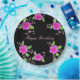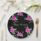 Bright pink flowered paper plates in black, personalise the light pink happy birthday text to suit any special occasion, or text is removable. Ideal for Easter, baby shower, wedding celebration, anniversary or picnic lunch. The black background can also be changed to any colour of your choice.