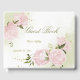 Pretty botanical wedding guest book featuring pink flowers with some green leaves .The gold glitter details are simulated.