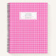 Beautiful retro style notebook with delicate plaid pattern. Great for studies. Check out the entire collection and color variation. Personalize with the first and second name and also the details of the notebook. Beautiful checkered notebook in pink and white. With area to customize name and subject of the notebook. Simple and classic notebook with retro style.