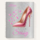 A heel shoe in pink with pink butterflies and silver add-ons makes for a girly monogrammed style that is perfect for the home office and business office as well as presents. Spiral Notebook.