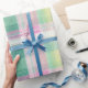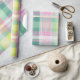 Pretty Pink Green Plaid Faux Woven Texture Look Wrapping Paper