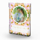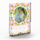 Pretty Pink Green Wedding Marriage Custom Photo Block Gift. A lovely gift for the newlyweds. Personalize this by adding your own photo and words. A warm colors sugar pink, summer peach, and spring green, modern geometric pattern starburst surrounds the photo of the bride, groom, or happy couple. A feminine and girly dopamine decor personalized gift to display in your whimsical living room, boho bedroom or eclectic home office. Celebrate your nuptials by capturing your cherished happy family memories with this keepsake. Makes a great gift for parents of the married couple too.