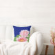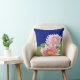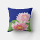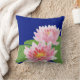 A chic Throw Pillow or Cushion, with two pink Water Lilies on a deep blue background. The water lily is the July Birth Month flower and there is space to add your initials or name if you wish.