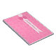 A chic and feminine vintage medallion pink damask pattern notebook with a stylish and girly ribbon banner and a cute decorative double bow. Personalise this pretty pink old fashioned style paper tablet by adding your name to the custom text area. Flat printed image, not actual ribbon. Design copyright of @OhSoGirly
