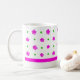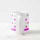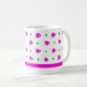 A pretty white mug, with a pink flowers, mini-print pattern, from a handpainted design by Judy Adamson. Tea pots, pitchers and other mugs with this and similar designs also available in my store.