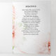 Floral celebration of life funeral programs with soft watercolor flower accents provide a beautiful and heartfelt way to honour the memory of a loved one. The front cover features a central photo framed by a delicate wreath of pink and blush blooms, accompanied by the words “In Loving Memory,” the name, and life dates, creating a touching and elegant tribute. Inside, the program includes customisable sections for the order of service, obituary, poems, and acknowledgements, allowing families to share special memories and guide attendees through the ceremony. The inclusion of meaningful readings or favourite hymns adds a personal touch, while the soft floral artwork throughout the design creates a warm and uplifting atmosphere. These programs serve both as a practical outline for the service and as a lasting keepsake for family and friends to cherish. Perfect for funerals, memorials, or celebrations of life, this floral design balances elegance and comfort, offering a dignified and timeless remembrance.